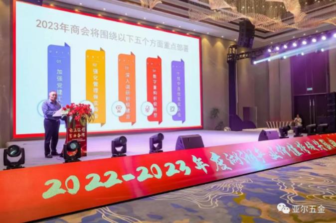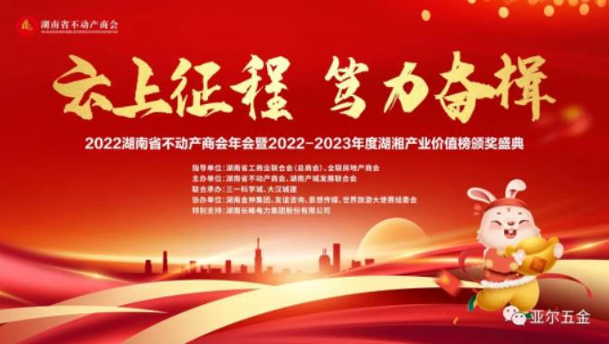 4月13日,以“云上征程,篤力奮楫”為主題的“2022湖南省不動(dòng)產(chǎn)商會(huì)年會(huì)暨2022—2023年度湖湘產(chǎn)業(yè)價(jià)值榜頒獎(jiǎng)盛典”在大漢金橋華美達(dá)廣場酒店隆重召開,亞爾五金集團(tuán)有限公司湖南辦事處受邀參加。這是一場湖南產(chǎn)城人的年度大集會(huì),來自省市職能主管部門領(lǐng)導(dǎo),全國百強(qiáng)及省內(nèi)前30強(qiáng)品牌房企的負(fù)責(zé)人、省不動(dòng)產(chǎn)商會(huì)會(huì)員,學(xué)術(shù)專家和媒體代表近300余人齊聚一堂,共話行業(yè)大勢,碰撞智慧火花。“產(chǎn)城湘軍第一陣營”超級(jí)年會(huì)震撼開啟。