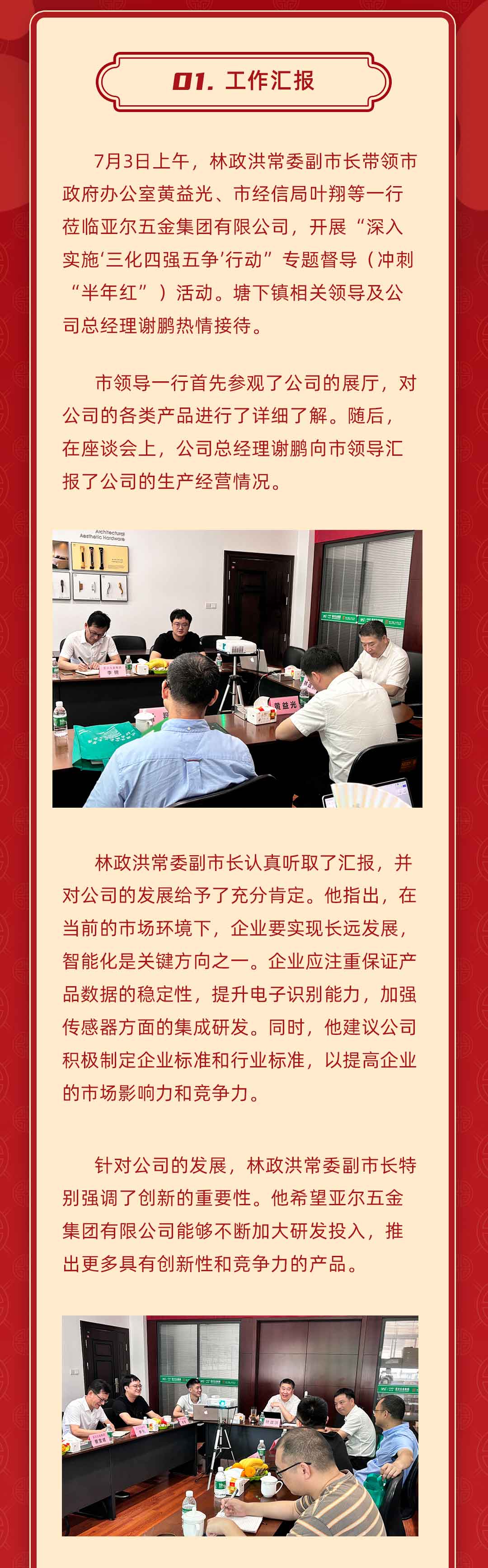 瑞安市委常委、副市長林政洪一行,蒞臨亞爾五金集團(tuán)有限公司調(diào)研指導(dǎo)