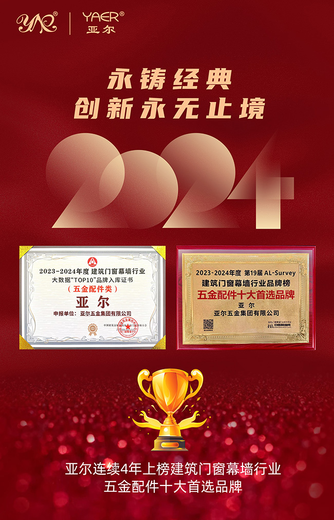 上榜的亞爾五金!是一家專門從事門窗五金產(chǎn)品研發(fā)、生產(chǎn)和銷售的現(xiàn)代一體化公司。公司專業(yè)生產(chǎn)鋁合金、塑料以及鋁木門窗五金產(chǎn)品。主要產(chǎn)品有內(nèi)開內(nèi)倒、內(nèi)外平開、推拉門窗系統(tǒng)、鉸鏈、多點(diǎn)鎖、傳動(dòng)器等幾十種類型產(chǎn)品。