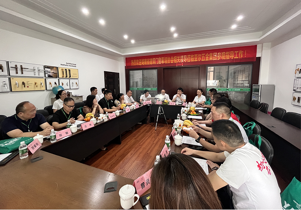 2023年6月13日下午,湖南省建筑門窗幕墻協(xié)會(huì)專家代表一行十余人蒞臨集團(tuán)有限公司參觀指導(dǎo),亞爾五金集團(tuán)總經(jīng)理謝鵬等領(lǐng)導(dǎo)對(duì)各位貴賓的到來表示熱烈歡迎,并全程陪同接待、參觀。
