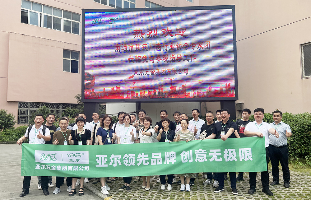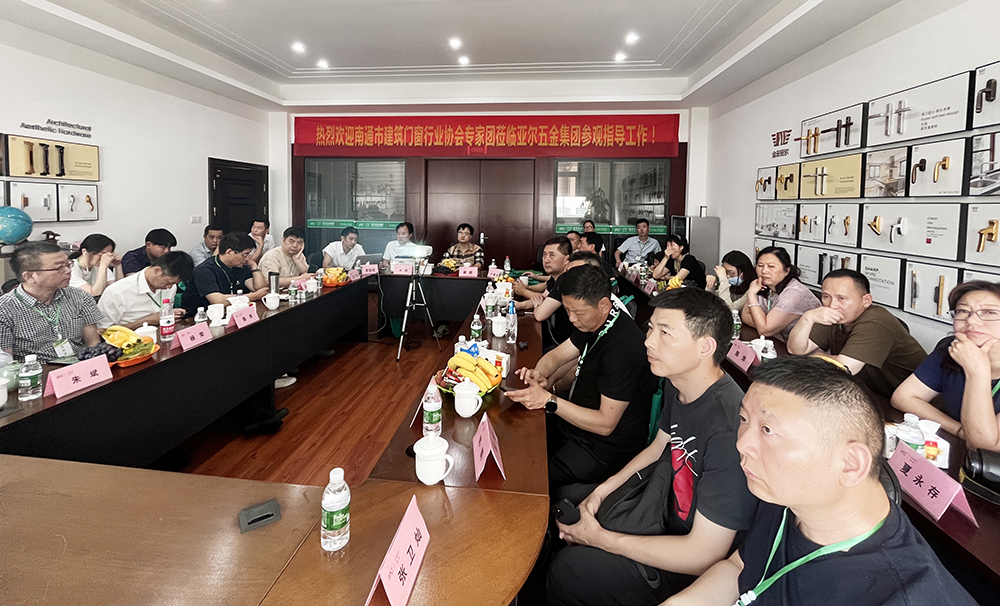 2023年6月9日,由南通市建筑門窗行業(yè)協(xié)會會長沈群領(lǐng)隊(duì),南通市建筑門窗行業(yè)協(xié)會專家組成的代表團(tuán)親臨亞爾五金集團(tuán)有限公司進(jìn)行座談考察。代表團(tuán)專家們在亞爾五金集團(tuán)有限公司總經(jīng)理謝鵬的陪同下參觀了公司門窗五金配件生產(chǎn)線、公司展廳以及檢測設(shè)備試驗(yàn)室,對亞爾五金集團(tuán)的生產(chǎn)工藝、產(chǎn)品應(yīng)用、研發(fā)實(shí)力有了直觀的、深入的了解。