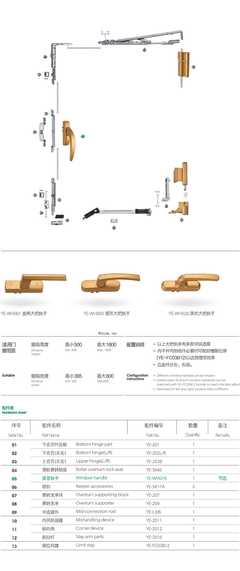 Hardware for Inward Open Tilt & Turu Window (L/R)