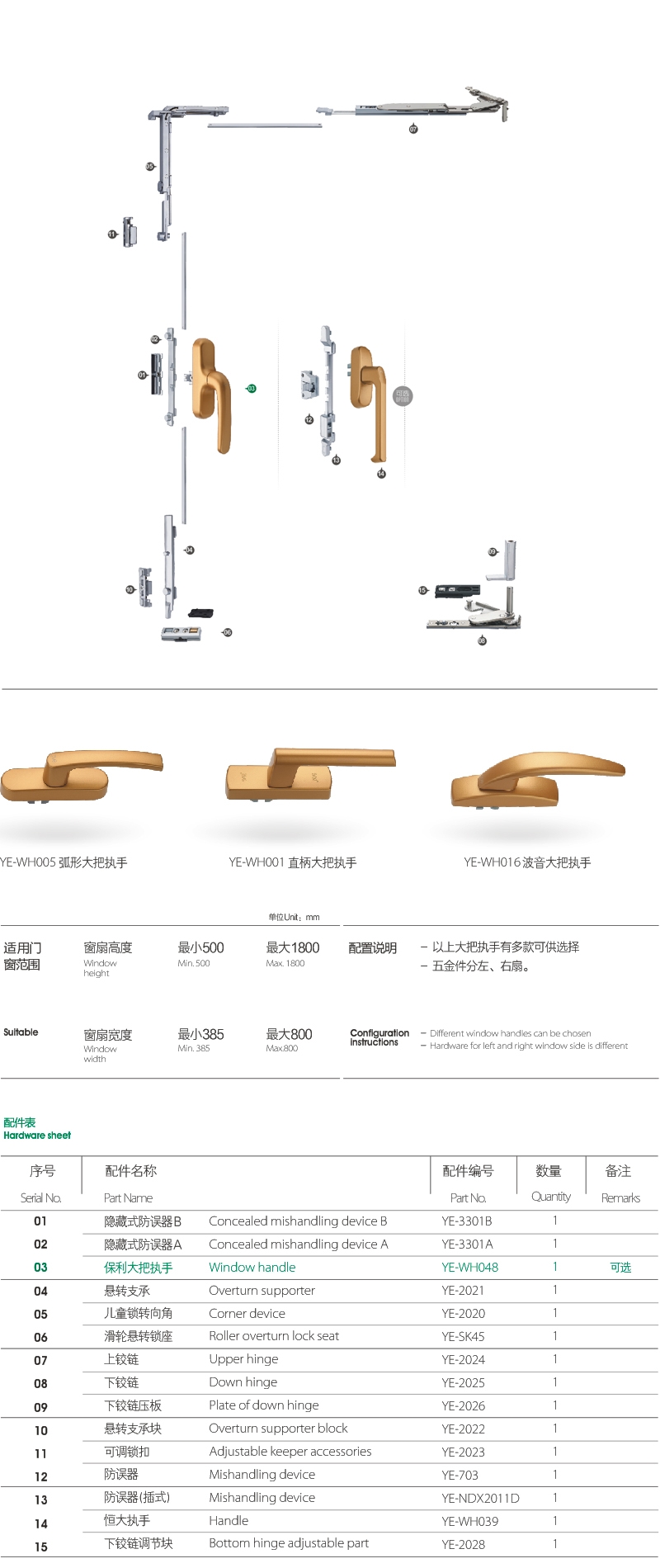 隱藏式內(nèi)開內(nèi)倒窗零部件