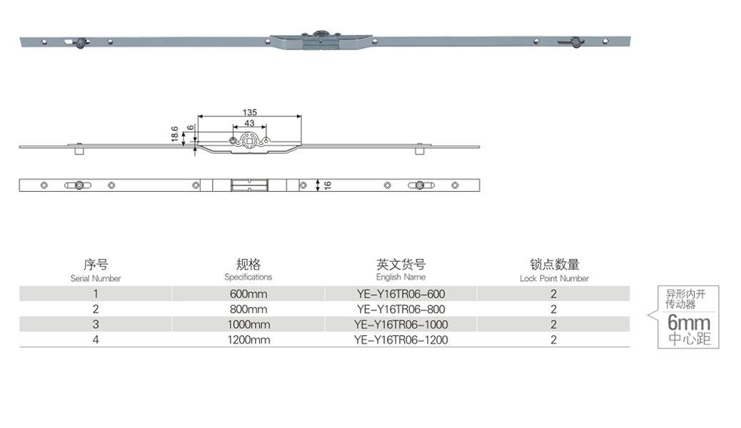 異形內(nèi)開傳動器 6mm中心距